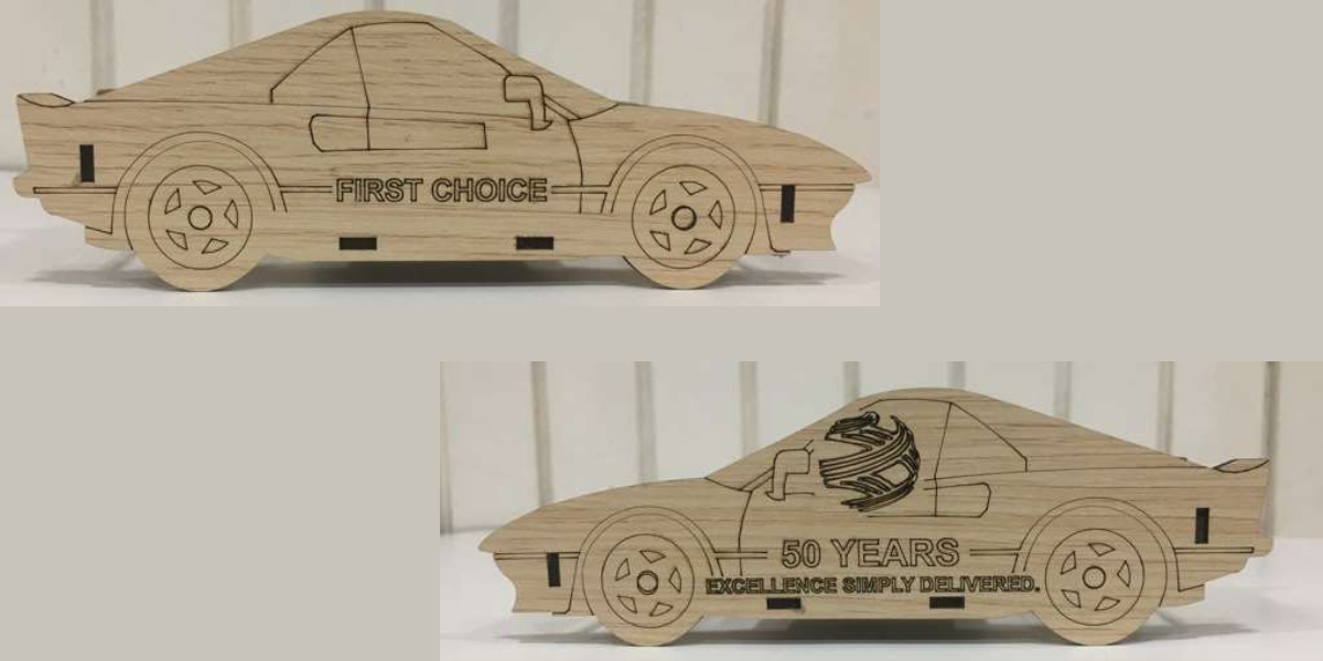 This prototype is made of laser cut wood finish MDF board.